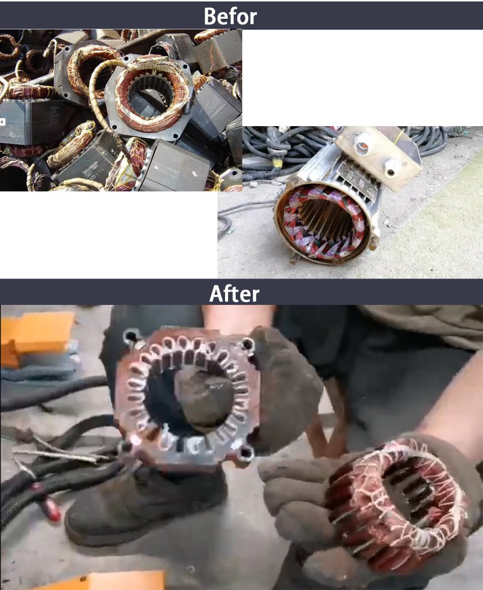 Motor Stator Recycling Machine Process all kinds of motor , such as household appliances, washing machines, industrial motor stators, etc.